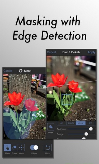 前文说到Tadaa的操作方式更便捷一些,但它也有力不从心的时候。由于区域必须经过涂抹后才可被突出,而并非如AfterFocus将其圈出即可,因而对一些边界清晰,而主体内部还存在多条轮廓的画面,用Tadaa处理就会非常棘手。例如左下图的玻璃瓶,AfterFocus只需给玻璃瓶画个白圈,而Tadaa则需要先关闭“DetectEdges”将瓶身涂满,然后再开启“DetectEdges”处理边缘。