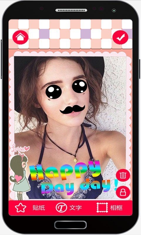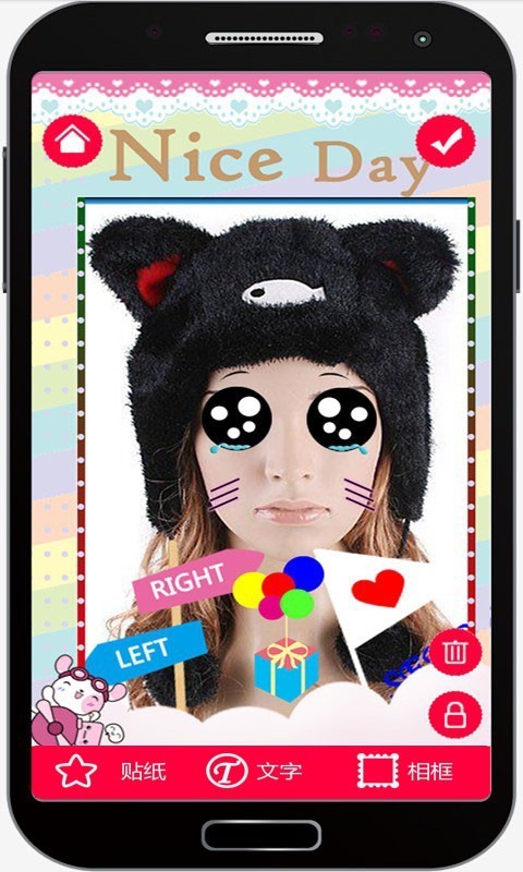 1、内置很多美丽可爱的贴纸和表情符号用于美化你的照片。