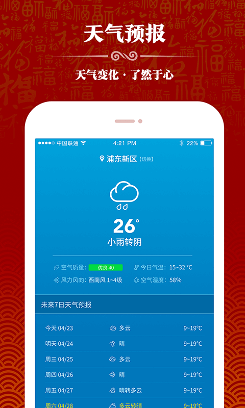 天气预报:天气预报、了如指掌!