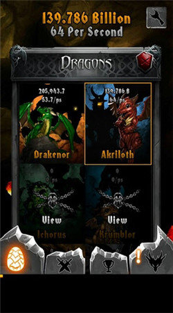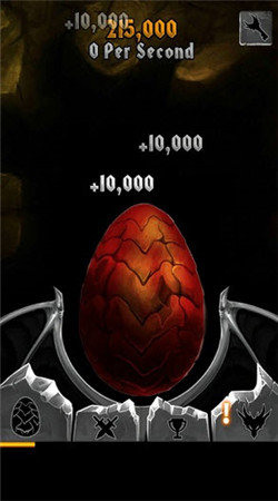 里面一共四个龙蛋,当玩家点击次数达到规定,它们便会破蛋而出,并带给你宝石奖励。游戏的亮点不多,除了等龙孵化外,也就只能升级下用途不大的能力了,不过对于闲着无聊的玩家。