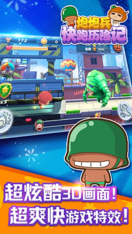 炮炮兵快跑历险记是一款热门IP表情包开发的一款定做冒险游戏,玩家化身可爱的炮炮兵,在关卡中进行跳跃障碍、消灭怪物、获取金币等动作,通关获取奖励,提升角色的各项属性,游戏场景简单清新,角色在场景内各类躲避障碍完成难度会加分。快来和可爱有趣的炮炮兵们一起展开新的冒险吧!