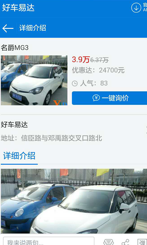好车易达app是一款生活服务应用,是个专注于二手汽车交易的手机应用。好车易达app是南阳梦幻工作室针对南阳本地个人打造的二手交易平台,让大家可及时获得二手交易信息,购买二手车。