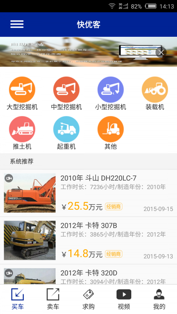 快优客全新上线,将为客户打造一个全链条的解决方案,可以提供专业的二手设备评估系统、高效的业务管理软件、以及诚信的交易平台,为工程机械最终用户、施工企业、二手机经销商建立高质量、可信赖的二手设备买卖机会和业务管理系统。