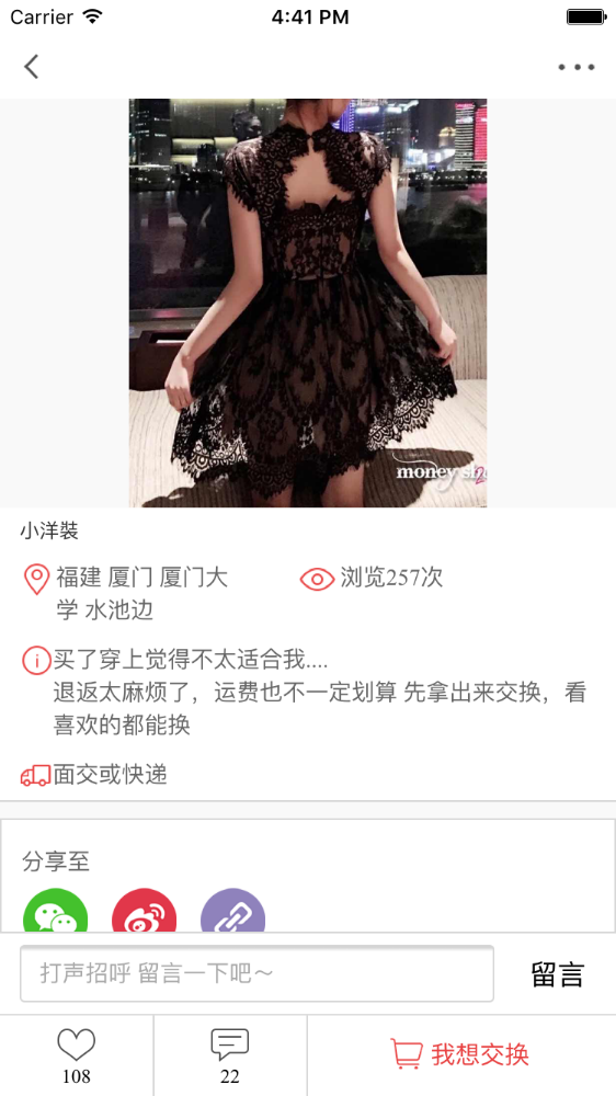衣服:(梦洁)买了一件小洋装不太适合我,退货太麻烦了(初夏)我有一个香奈尔小包很少用,要换嘛?