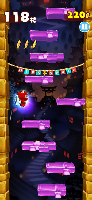 忍者跳跃安卓版官方下载是一款充满趣味和挑战的动作休闲游戏,由backflip studios精心打造。在这款游戏中,玩家将化身为一名身手敏捷的忍者,踏上不断向上攀爬的冒险之旅。游戏场景精美,融合了日式神社、城堡等元素,营造出浓郁的日式风情。玩家需要控制忍者躲避各种障碍和陷阱,同时击落空中的飞行物以获