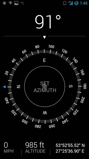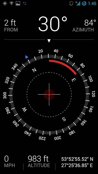 Compass:您可以设置方位角和点击保存你的位置。可以看到目前的速度,高度和坐标。