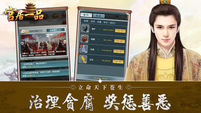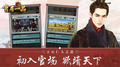 宫斗之官居一品是一款以古代官场生活为主要故事题材打造的模拟手游,在庞大的皇城朝堂之中,你将扮演一名布艺秀才,从芝麻官开始,不断攀升,最终成长为掌握天下大权的名臣宰相,招募名动天下的门客谋士,为你提升官场实力,出谋划策,提升政绩!