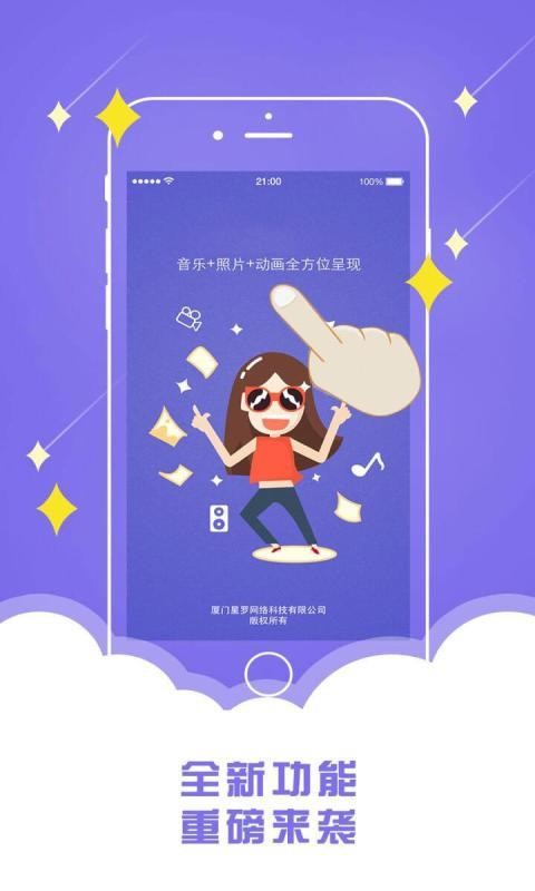 支持一键发送社交平台,免费提供多样精美相册模板,动听音乐,可立即生成动感相册,至炫至酷。