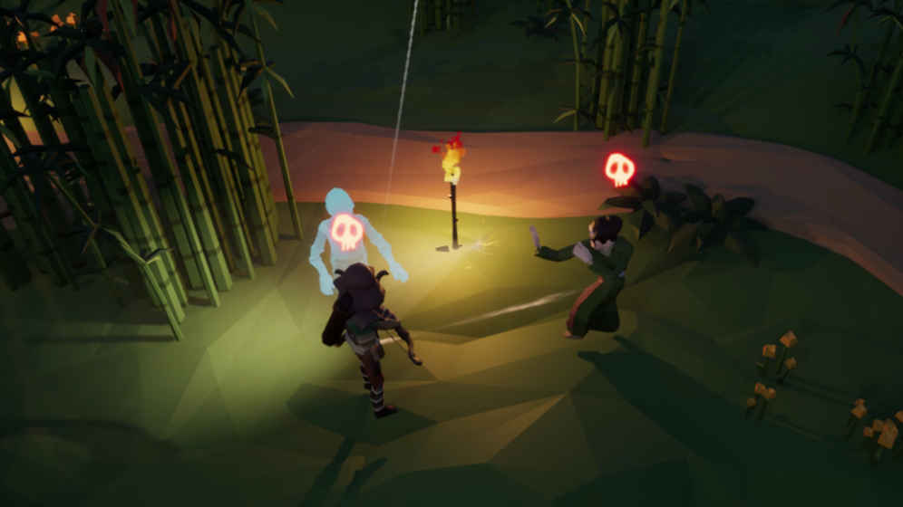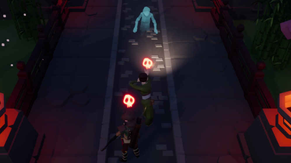 玩家在前进时,周围有怪物出现警示,这时候女魔法师需要迅速用光照找出怪物,怪物在被光照射到时会现形,逐渐减速直至静止,男性弓箭手则需要在怪物现形时将其击杀。
