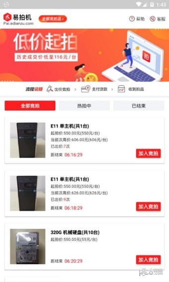 易拍机平台是隶属于易点租的专业二手电脑拍卖平台,
