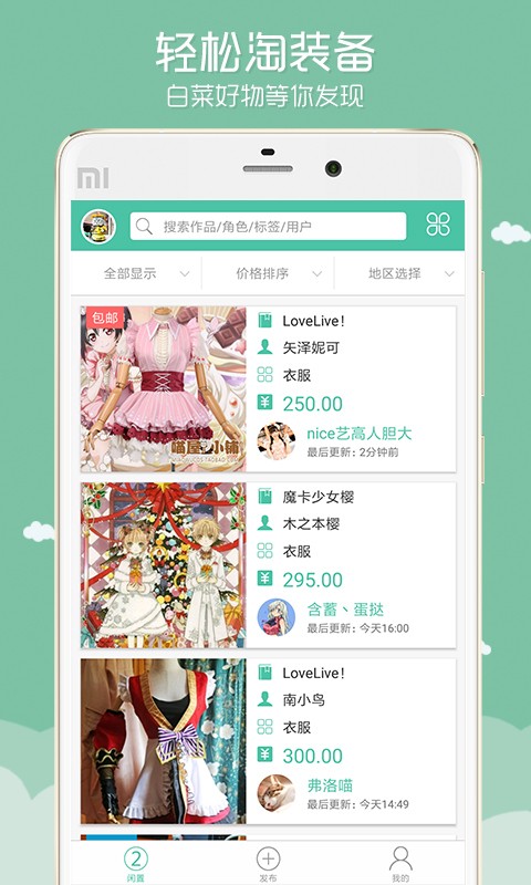 废猫APP是专业的Cosplay二手闲置服装装备信息发布网站,Coser们可以在这里买卖道具、服装、假发等,快速发布,详尽筛选,用特别少的时间淘到满意的Cosplay服装装备或者把闲置的Cosplay装备转手。