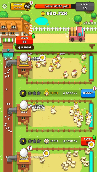 4、同时孵化母鸡,建立鸡笼,解锁所有可用母鸡,并建立您的蛋农场帝国!