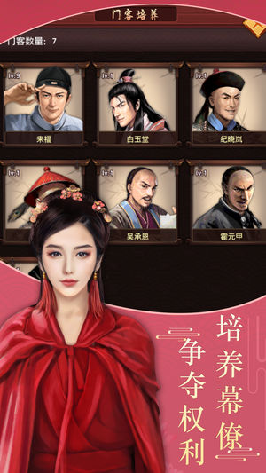 仕途风月是一款好玩不累的手机宫斗手游。游戏中你可以体验丰富的宫斗玩法,享受权倾朝野的乐趣与爽快,还有三千佳丽齐聚你的后宫,喜欢的朋友们不要错过啦!