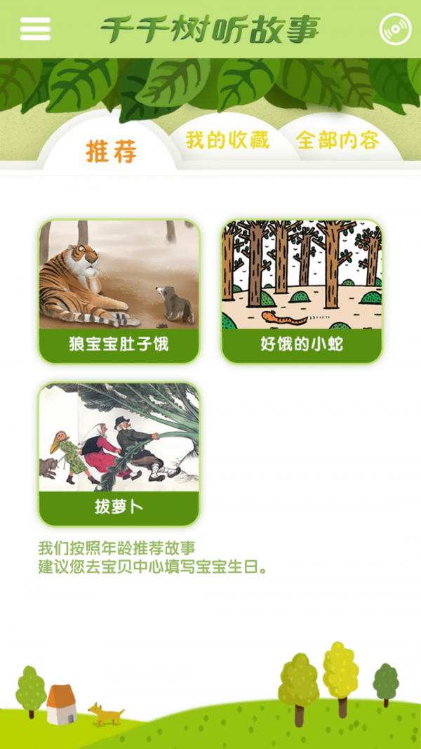 千千树听故事app是一款故事软件,千千树听故事app中有丰富的适合孩子阅读和学习的故事,对于宝贝的成长非常有帮助。