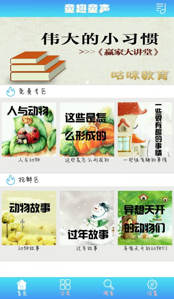 童趣童声app,提供免费的儿童读物(部分内容收费),为您的孩子制造一个良好的生长环境。