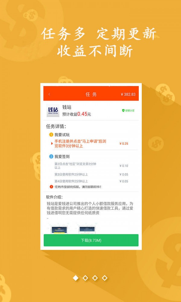 最靠谱的手机赚钱平台,多种任务模式,随时随地,用手机完成任意即可获得高额奖励;