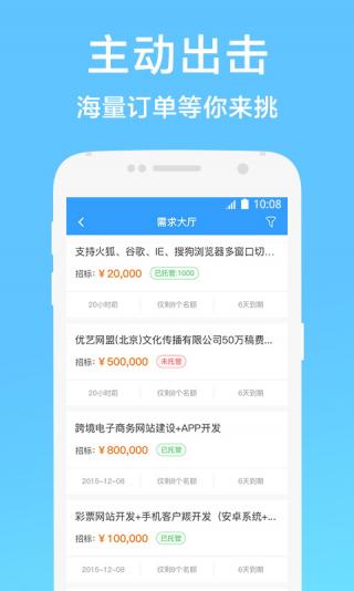 钉耙App是专为猪八戒网服务商和天蓬网服务商量身打造的移动工作台,方便服务商随时随地接单,进行服务交易管理。提供的数据展示可让服务商时刻了解店铺流量、订单、成交金额的变化,帮助服务商进行更多的服务管理和店铺运营。