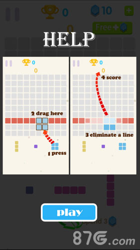 1010彩色星星是一款引人入胜的益智游戏,玩法简单但有特色。简单易学且玩法有趣,是一款完美的手机益智游戏。在这款让人入迷的益智游戏中,只需将模块拖放到屏幕中,在垂直和水平方向创建并消除整行模块,阻止模块填满整个屏幕。没有时间限制,无需颜色搭配!用匹配的模块填满所有网格,享受这款益智游戏!用你充满颜色童真的眼睛去观察这个充满趣味、游戏童真的游戏世界吧!