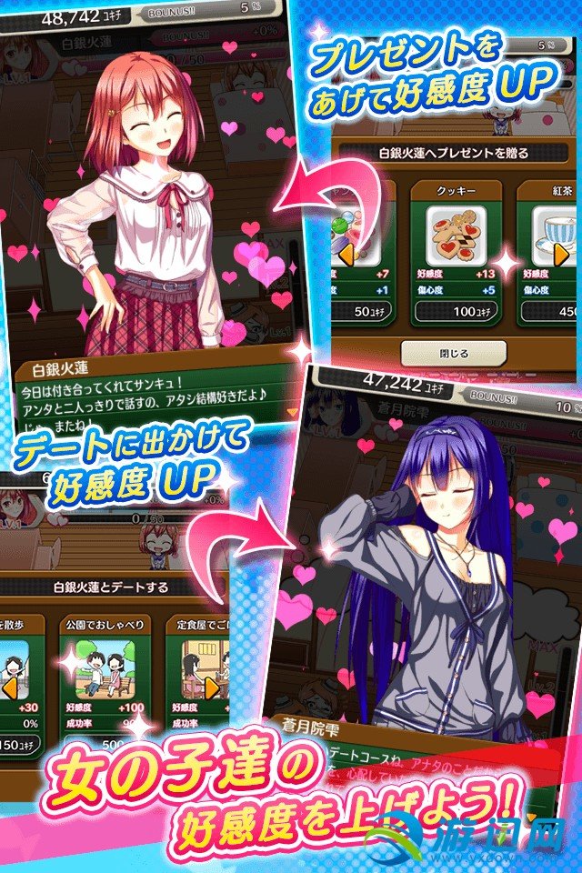 1.点击在学生面前的现充男,。2.使用钱可以送学生礼物增加好感度。3.不断增加好感度后等级上升!