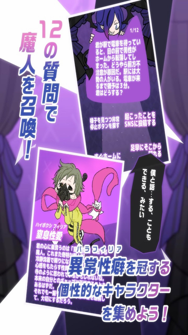 魔人召唤是一款有趣的问答小游戏,在这里你将接受总计十二个问题,遵循你的内心回答这些问题,你将接受诊断的同时召唤出在你心中的恶魔!还等什么,感兴趣的话就快来下载体验吧!