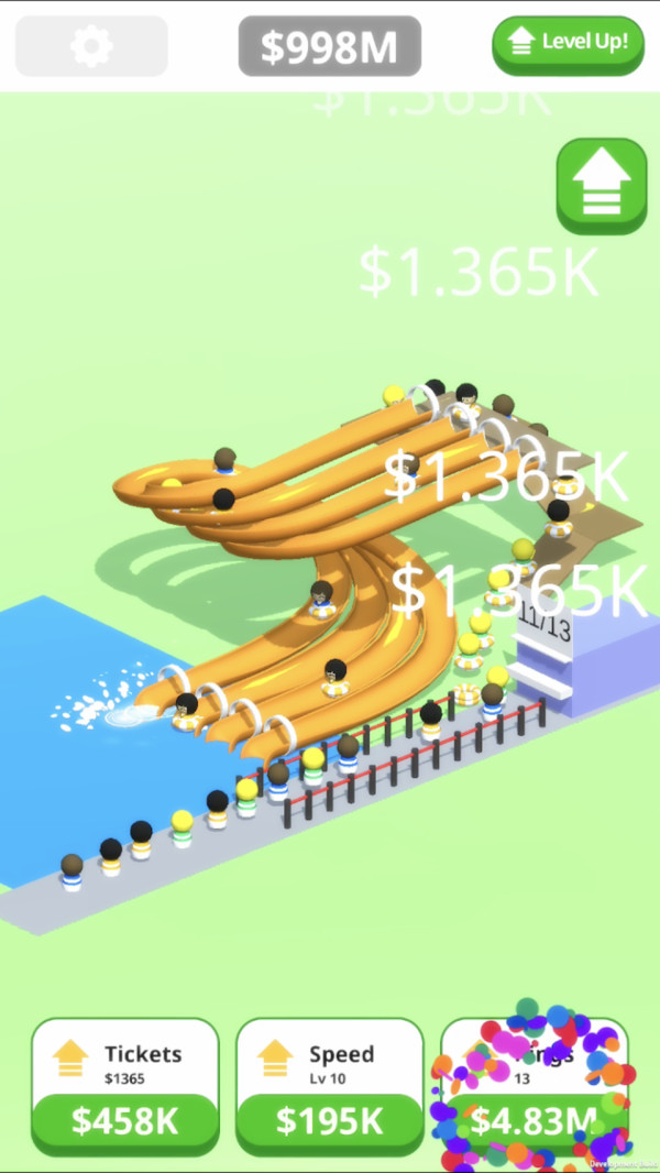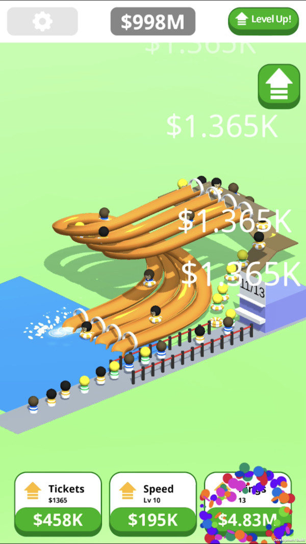 2、玩法简单,不断升级建筑让你的滑道变的更加赚钱