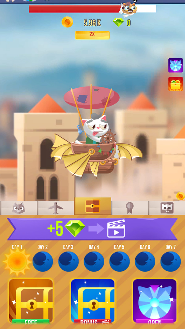 骑士猫闲置是款好玩的休闲手游,你的猫要造飞机的演变中开始冒险!通过激动人心比赛或者是开发航班运输来获取金币,从商店中购买飞机零件改进飞机,还可以聘请自己的助手哦!