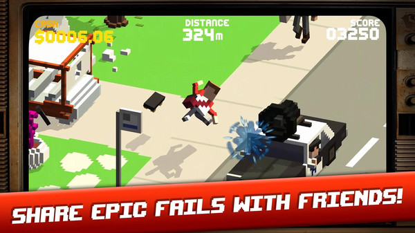 游戏故事背景设置在20世纪80年代的一个城市,像素风格的图形很有趣,在没有任何限制的情况下,控制角色在城市中移动,躲避自行车,汽车,路障等,并将视频投递进邮箱,获得积分和金币。