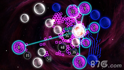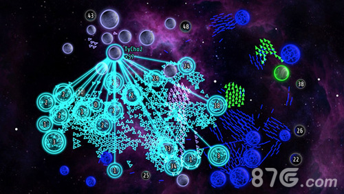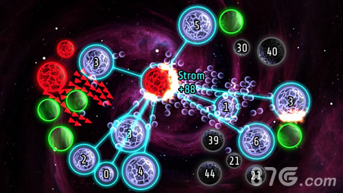 《银河输送站2》画面非常的简单,一个宇宙星辰的背景下只有一颗颗的星星,游戏的的目标也非常的简单粗暴,玩家只要占领全部的星球,然后将其他星球上的所有势力全部消灭干净就好了。在战斗上,也看起来非常的简单明了,敌我双方的战斗力仅仅就是以三角形组成的舰队。