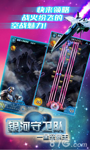 《银河守卫队》作为一款飞行射击类的手机游戏,现已为玩家提供了游戏安卓版本的体验渠道。邪恶帝国在上一次星球大战的溃败中复苏,他们派出了更庞大更又先进的战舰群侵入银河系,试图一举歼灭所有的抵抗力量,然而勇敢的银河护卫舰队队并不惧怕,他们重返战场,与敌人展开了一场宇宙风暴!马上加入游戏,在唯美的宇宙景色中去入侵者决战到底,感受那真实的爆炸效果,最绚丽的战斗,等你来!赶紧开始你的英雄之路吧!