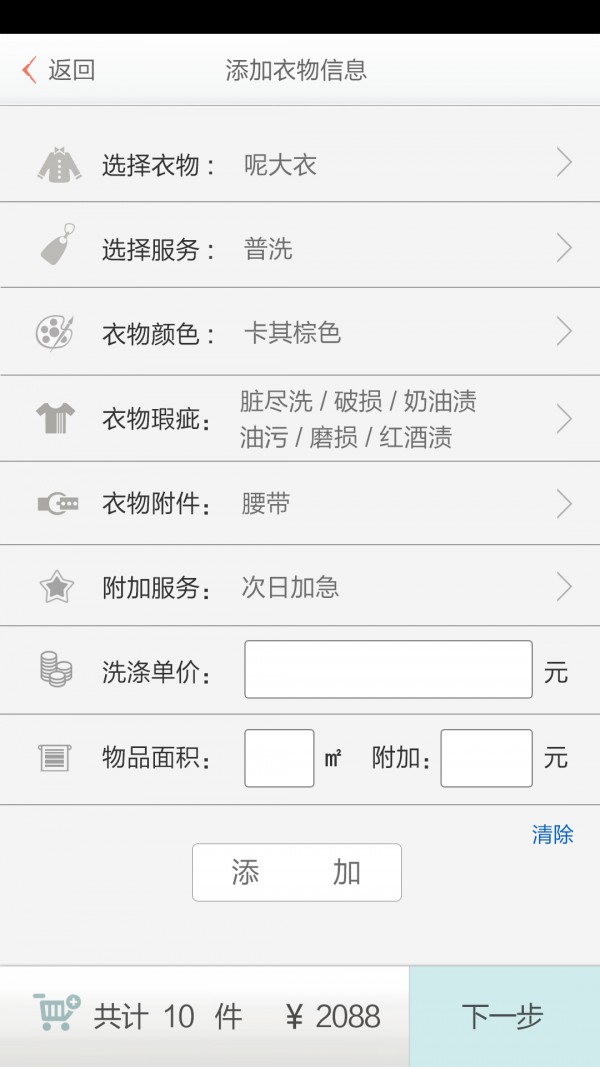 收取衣物,新增选择可享受折扣优惠的支付方式的功能。