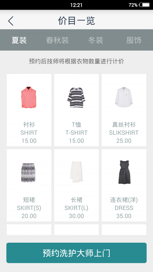 用户需要清洗时,仅需APP下单、预约时间地点,就会有专业的服务人员按时上门收取衣服。