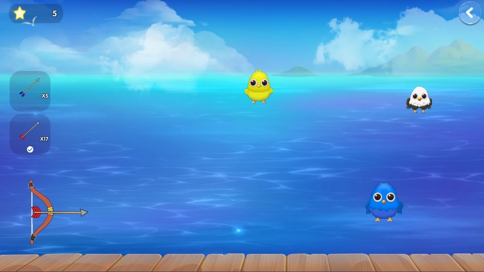 使用不同箭支射击可爱的鸟儿