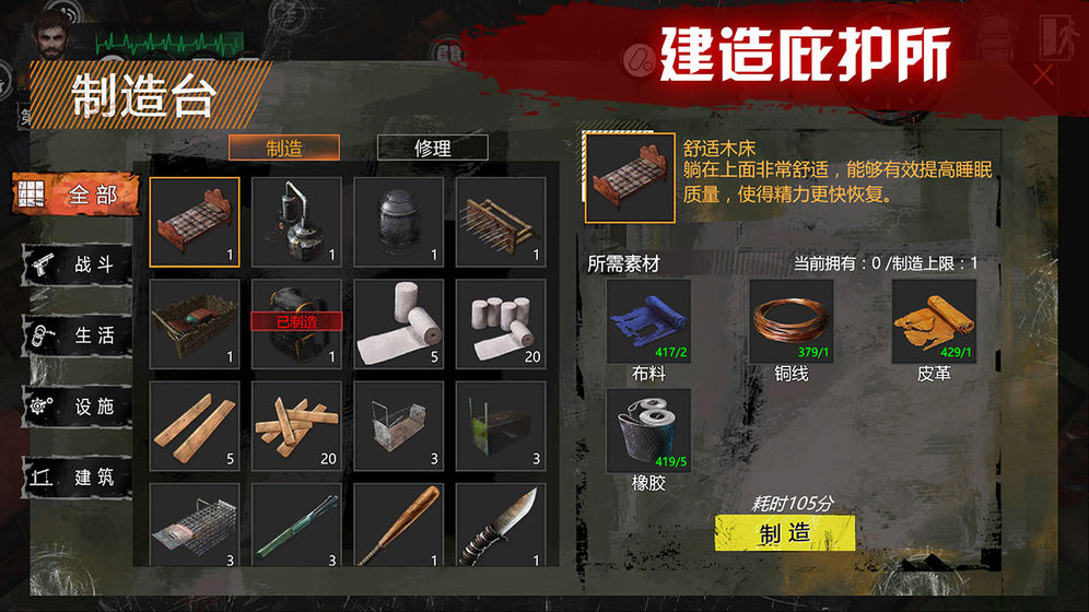玩家可以建造各种防御物品抵御僵尸侵袭,一旦避难所被僵尸攻破,玩家将直接死亡。