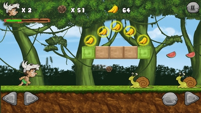 丛林冒险记是一款风格有趣的冒险游戏。游戏操作非常简单,玩家控制着角色,翻越障碍,打败怪兽,躲避陷阱,快速穿过丛林。快来开始你的丛林冒险,救出你的女朋友,还有更多困难等待着你。