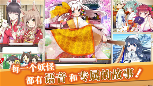 2、不断的升级你的妖姬,提升战力和属性值,击败各种强大的怪物,跟随你的美少女妖怪一起战斗。