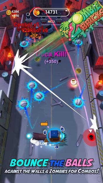 1、各种僵尸正在接近你的英雄正在保护的最后一道防线。他们发射大炮甚至将自己的身体部位扔到你身上并自行爆炸。通过向左和向右移动来躲避那些僵尸攻击并向它们击球以摧毁它们。