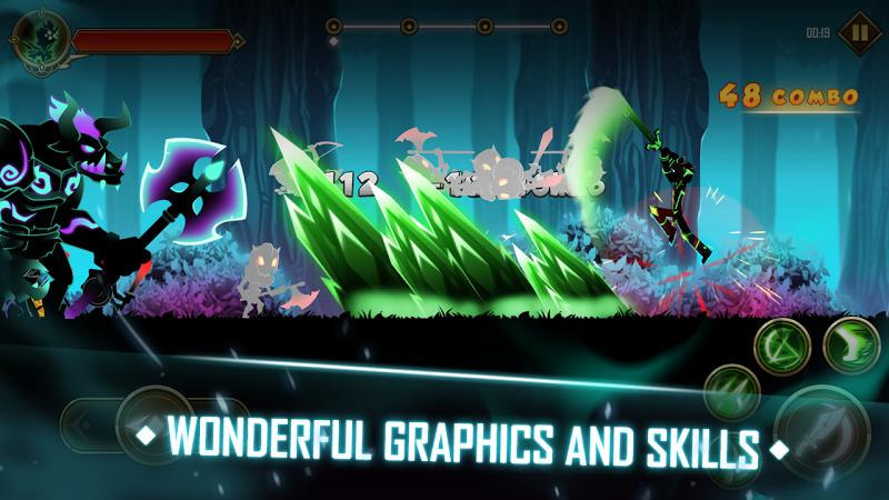 1、战斗开始时,每个火柴人都需要对抗不断攻击他的危险怪物。