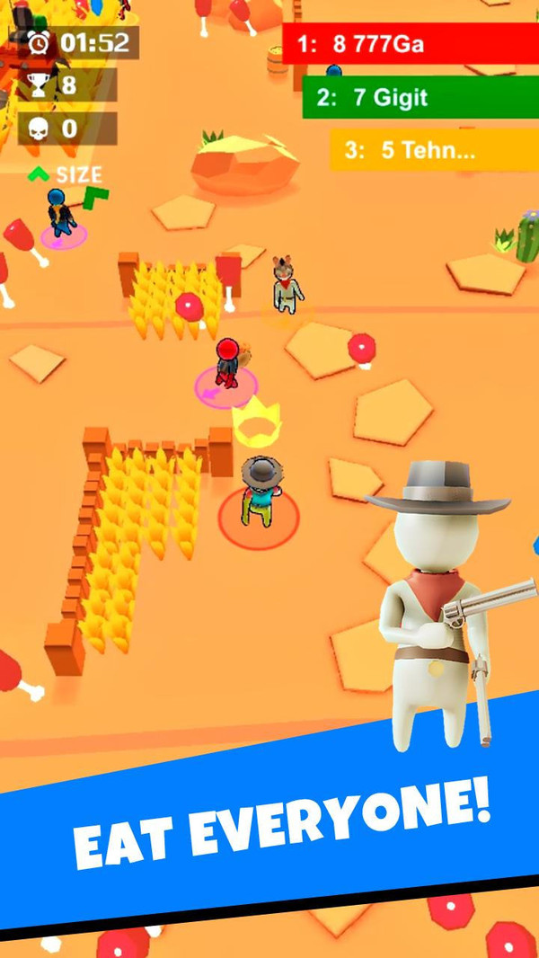 一款全新打造的io竞技手游,玩家在游戏中化身一名牛仔,与多名玩家在线展开io竞技,打败其他的牛仔,成长为最大的牛仔。多种皮肤和道具可以解锁体验!