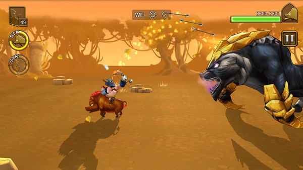 怪物猛追是一款采用美式动画风格的动作冒险游戏。玩家在游戏中饰演屠龙勇士,你需要在原始的野外进行生存,驯服野猪作为你的坐骑,进行打猎获取食物,打造装备保护自己!