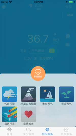 1、添加想关注的人,特殊天气提前发送预警信息;