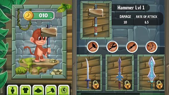 2、玩家需要多收些金币和神秘道具来增强猴子的能力和武器,帮助他走得更远,