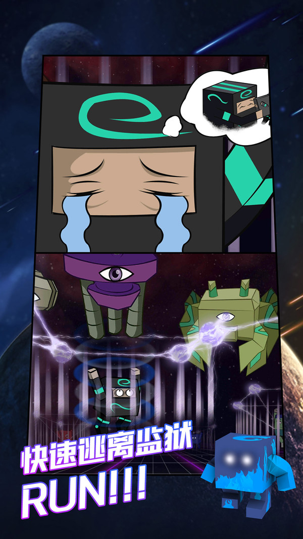 5、通过跳跃、选择和攻击来控制角色在游戏中的移动。科技感空间场景,努力越狱。