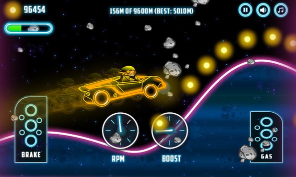 系好安全带,准备好!霓虹灯爬山比赛提供了一个惊人的休闲游戏体验。经典的汽车和丘陵游戏现在是霓虹灯风格。选择你最喜欢的霓虹灯汽车,在山上和小山上享受骑霓虹灯的乐趣。在不同的世界里玩耍,用不同的颜色点亮。获得大量的硬币和升级你的车每次完成每一级。你准备好欣赏一个最好的冒险赛车游戏了吗?