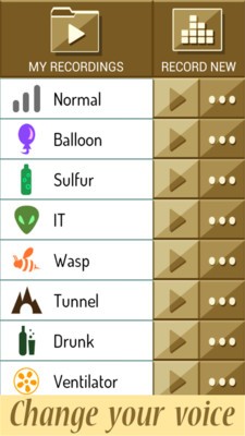 可用语音和声音效果:正常,气球,硫,它,黄蜂,隧道,醉,呼吸机,孩子,礼仪,卡通,恐怖,吓人,漫画,穴居人,手机,CIPI-RIPI,快速,乞力马扎罗山,抗议,墓地,聪明的蓝精灵,海底,警察和机械战警。