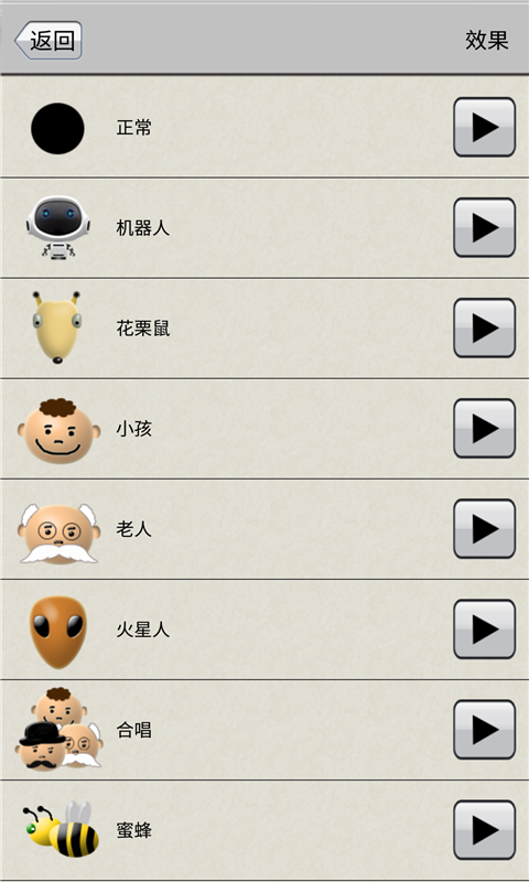 变音软件手机版只需手指轻轻一点,就可以变声音了!手机变音器app不仅可以录音,手机变音软件还能把你的声音变得有趣,而且变音软件手机版还支持分享给微信和QQ等好友,手机变音软件支持嘚啵嘚、喝醉了、小萝莉、大叔音、搞怪声、机器人、脑血栓、醉小孩等特色音效。变音软件