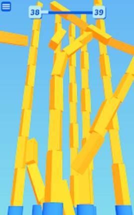 1、越到后面难度越大,注意不要把红色的积木打下来了。