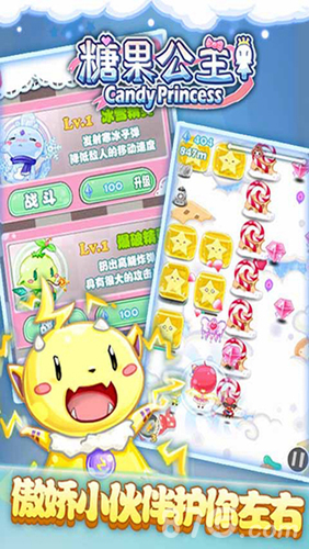 萌萌哒的飞行射击手游糖果公主2终于出现啦。游戏拥有超多超好玩的设定,让玩家随时随地都能玩得尽兴。48个主线关卡和10大关隐藏关卡,让你嗨不停;4个不同的可爱公主拥有四种不同的特色,携带5大精灵伴随你一同闯关激进!同时,游戏还包含超多超实惠的游戏道具奖励。玩家只要进入游戏中,简单地通关地图就能获得道具,和公主一起打败邪恶糖果!
