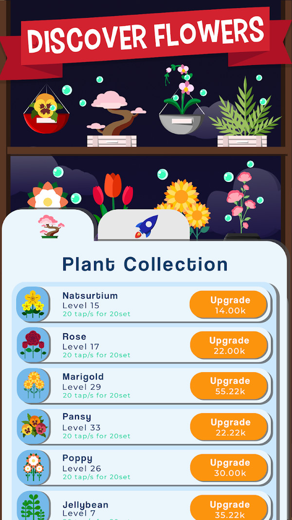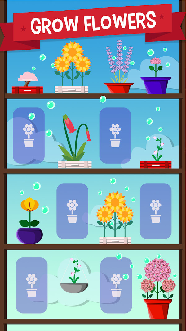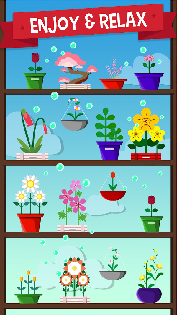 玩家可以在手机上种植各种不同的花卉植物,每种花卉都有不同的世代循环和不同的阶段的外观,感觉它们在手机上慢慢地生长开花吧!
