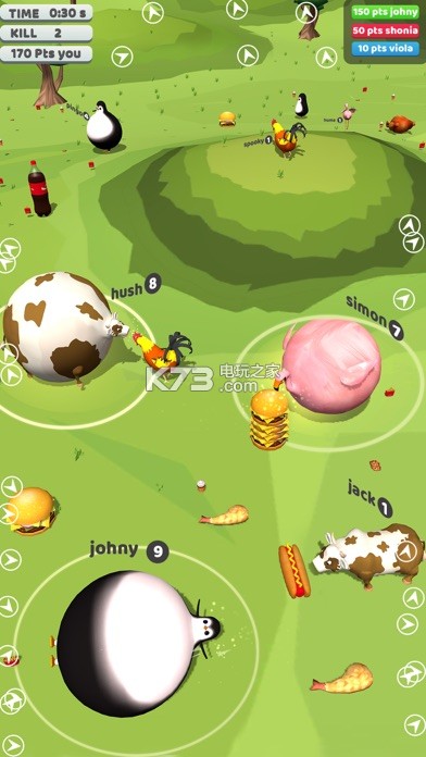 4、多人游戏,游戏中你将需要控制饥饿的动物开始进食,把自己吃得像球一样胖,