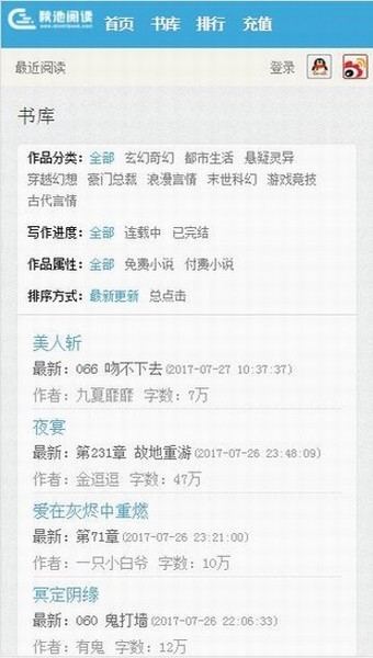 秋池阅读网是杭州千韵信息技术有限公司旗下的原创文学网站。秋池阅读网的作品内容多元,主要包括:悬疑灵异、玄幻仙侠、历史军事、都市校园、现言古言等,能够满足各类读者的阅读需求,你要你想,我们就有!
